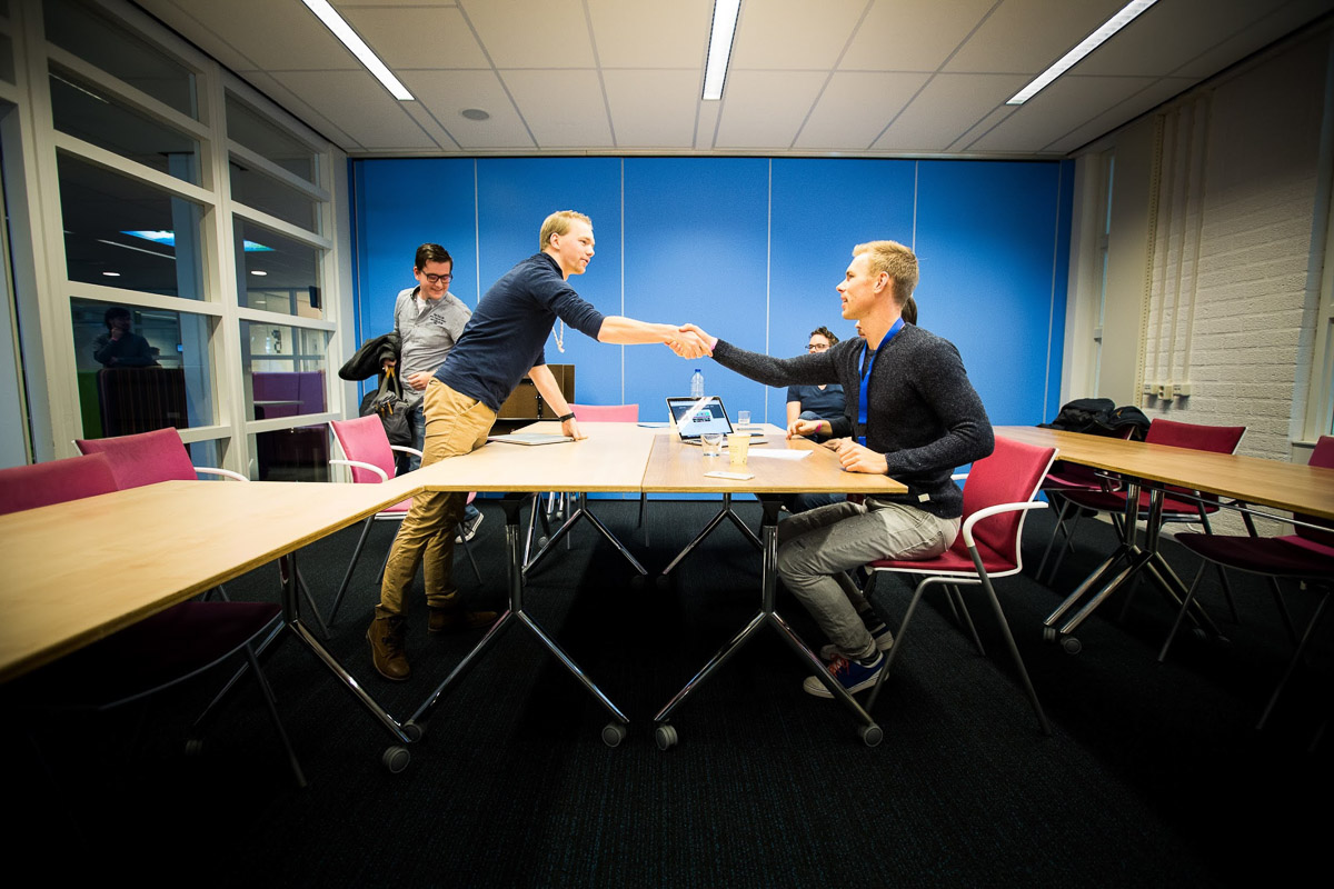Wij van Upstart vonden een informele setting voor een 1-op-1 ontmoeting van een student met een toonaangevend bedrijf een mooie manier om de muren tussen onderwijs en bedrijfsleven verder af te breken. Uiteindelijk hebben ruim 75 gesprekken plaatsgevonden en is de eerste Upstart een groot succes gebleken.